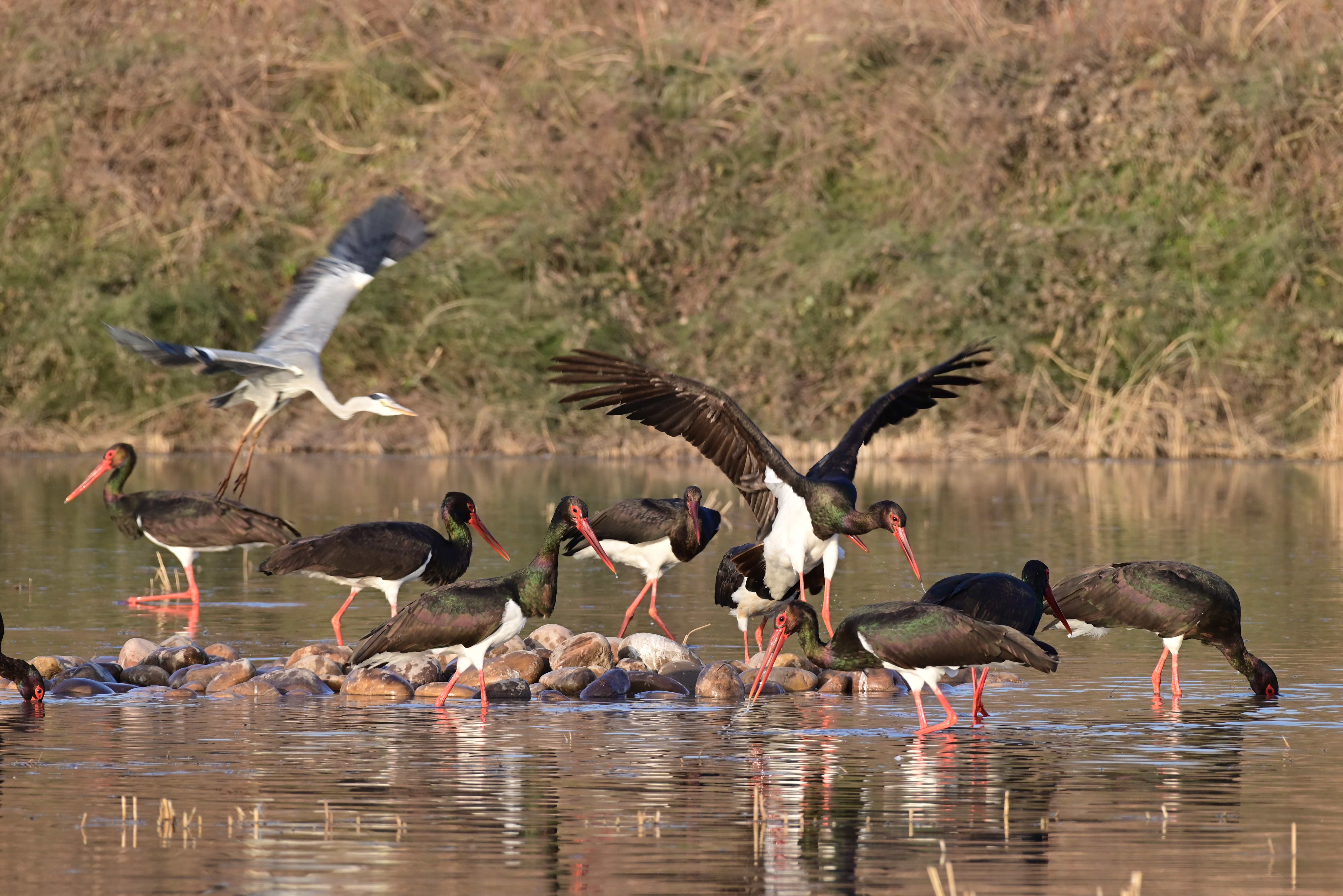 大雪节气,归来过冬的豆雁、黑鹳在黄河湿地保护区孟津会盟段的滩涂上驻足停留。聚若浓墨点染冬寒,散如飞雪融入长河。(河南省洛阳市孟津区纪委监委供 吕晓鹏 摄)