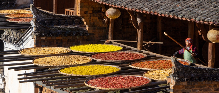 岭上的秋天里,心灵手巧的农户,在层叠瓦房的自家晒秋场上,用浓烈的色彩绘制出丰收画卷。(吉利区纪委监委供 吕学飞摄)