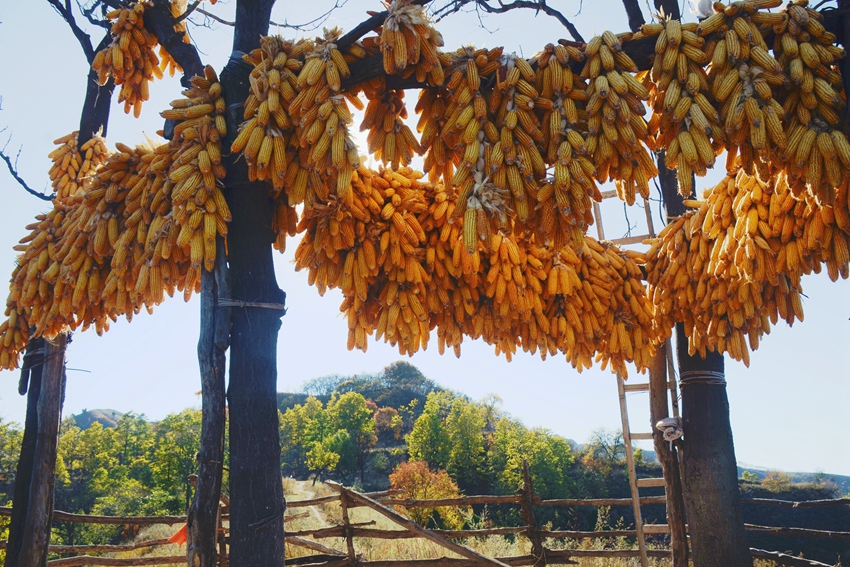 金秋时节,串串饱满的玉米挂满农家小院,晾晒着大自然的馈赠和农户的辛勤劳动,为色彩斑斓的秋日再添一抹绚丽。(宜阳县纪委监供 邱宗勤摄)