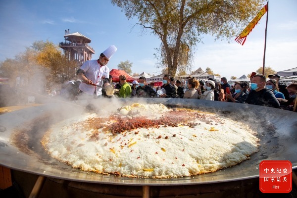 新疆的抓饭五花八门,品类很多,但沙雅的海楼抓饭,却以其独特的地域风味和滋补功效,吸引了更多的游客前来品尝。(新疆维吾尔自治区沙雅县纪委监委供 李斌 摄)