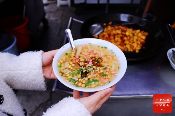随着气温逐渐升高,与三五好友相约到印江县朗溪镇来一碗农家纯手工“虾米”,爽滑可口,十分惬意。而这碗平凡无奇的“虾米”在带给游客美食享受的同时,也给当地的人们带来了火红的好日子。(贵州省铜仁市印江自治县纪委监委供 王丹 摄)