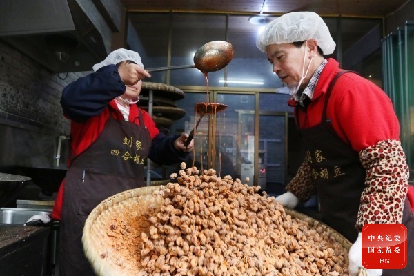 位于重庆市巴南区丰盛古镇的刘家“四合胡豆”,在这个千年古镇已经传承百年,并于2018年评为巴南区级非遗。每到节假日的时候,刘家四合胡豆店门口总是聚集很多人,有驻足观赏制作工艺的,也有品尝味道的,刘家四合胡豆的麻、辣、酥、脆、香,每一种口感都别具风味!(重庆市巴南区纪委监委供 邓箭 摄)