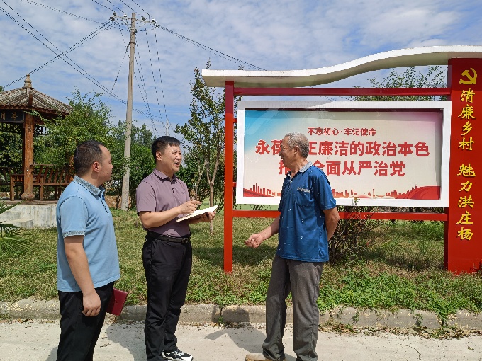 叶县纪委监委在清廉村居建设中通过设立群众信箱、一线走访等方式,积极接受群众监督和情况反映,为群众解难题办实事。图为该县洪庄杨镇纪检监察干部在小庄村走访群众,了解惠民利民政策落实情况。(叶县纪委监委 王洋 摄)