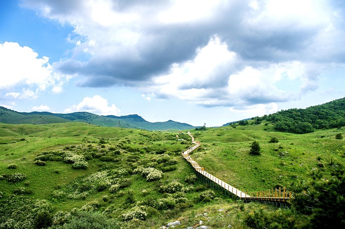 夏日晴光里,木栈道如丝带穿梭翠山。云影漫溯青山,繁花与芳草轻晃,游人徐行,脚步叩响悠然,把喧嚣甩在风里,让身心浸在这满溢诗意的清凉里。(新密市纪委监委 刘宏恩 摄)