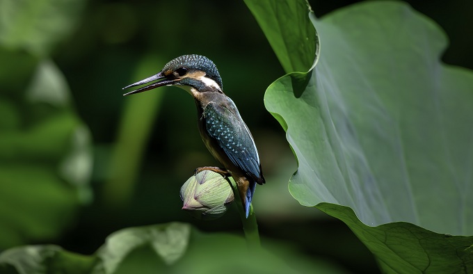 大暑时节,荷叶田田。翠鸟稳稳站在荷花之上,身姿挺拔,靛蓝色的羽毛与四周繁茂的荷叶相映成趣,尽显夏日的生机与美好。(郑州市上街区纪委监委 韦耀星 摄)