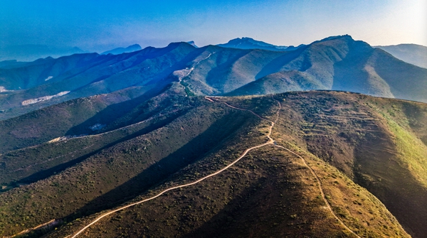 青山如黛连绵起伏,蜿蜒小路伸向远方,秋光浸润的万亩草海泛着鎏金光泽,阵阵秋风吹来,尽是秋日里的自由与惬意。(河南省洛阳市偃师区纪委监委供 肖亚力 摄)