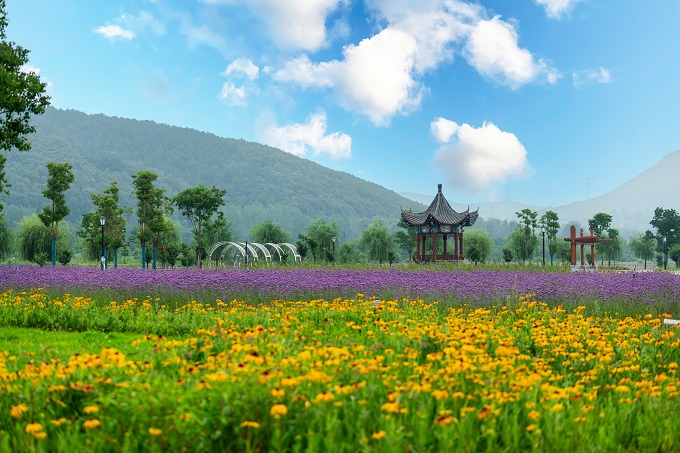 花海美如画,莫负好时光。摇曳生姿的花海与亭台遥相辉映,一朵朵、一簇簇,密若繁星,恰似紫霞,五彩烂漫醉人心。(舞钢市纪委监委 宗秀霞 摄)