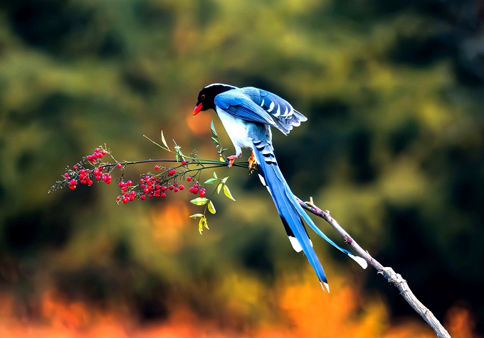 红果山涧沾露珠,鸟儿翩然落枝头。春风和煦,万物复苏,春天染绿了大地,红彤彤的小果引来红嘴蓝鹊啄食,为生机盎然的春日又增添了一抹生机。(郑州市金水区纪委监委 李煜 摄)