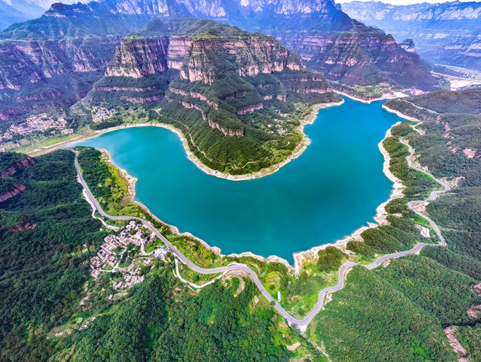 九月的太行山大峡谷褪去盛夏的炽烈,红岩绝壁与澄澈湖光交辉。阳光穿透薄雾,水面碧绿如玉,将天空的蓝、树叶的黄、崖壁的红,统统揉碎成流动的油画。(林州市纪委监委 秦阳 摄)