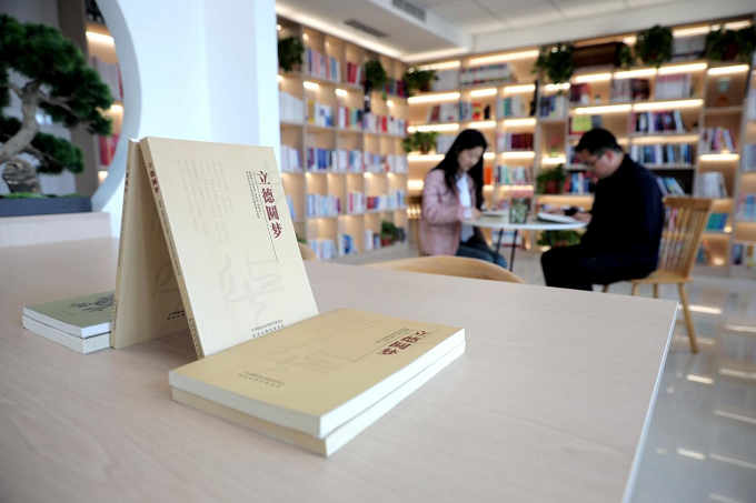 新密市纪委监委通过挖掘本土勤廉典型事迹、优秀家风故事,编印廉政书籍《立德圆梦》,引导广大党员干部从自身做起,弘扬清廉美德,让廉洁文化融入日常、深入人心。图为新密市党员干部在单位图书角学习《立德圆梦》。(新密市纪委监委 杨宗昊 摄)