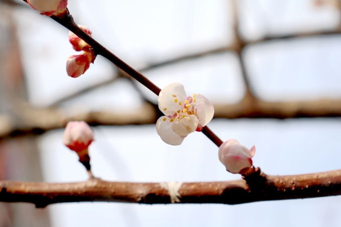 春分时节,游园里的梅花疏枝缀玉缤纷怒放,有的傲然枝头,有的含苞欲放,有的白似瑞雪,将中原大地点缀得美不胜收。(郑州市上街区纪委监委 韦耀星 摄)