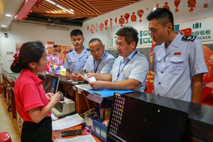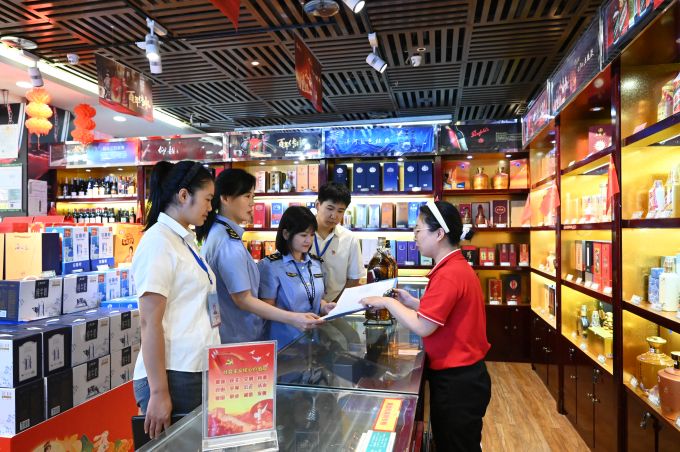 清丰县纪委监委联合税务、市场监管部门,深入辖区商超、酒店等场所,排查违规收送礼品礼金、违规吃喝、违规发放福利等问题线索,严防“四风”问题反弹回潮,确保节日风清气正。(清丰县纪委监委 李荣强 摄)