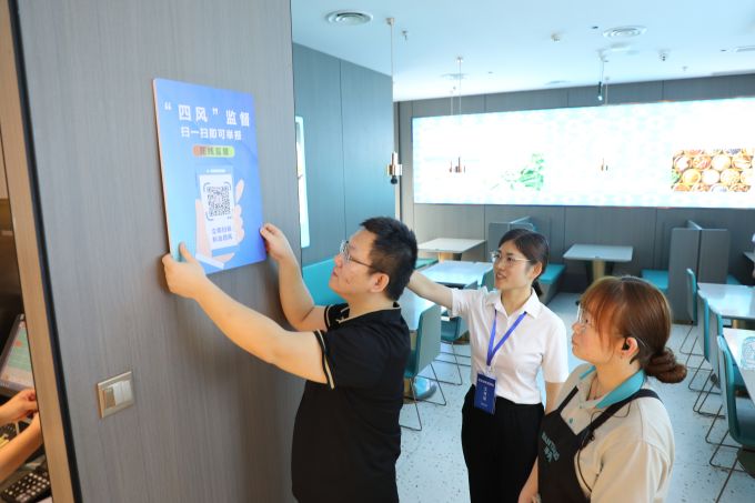 鹤壁市淇滨区纪委监委借助“互联网+监督”方式,拓宽“四风”问题线索举报渠道,通过在商超、餐饮等公共场所张贴在线监督二维码,链接省纪委监委“四风”问题举报平台,方便群众随时对违规吃喝、违规收受礼品礼金等问题进行举报。(鹤壁市淇滨区纪委监委 尚翔 摄)