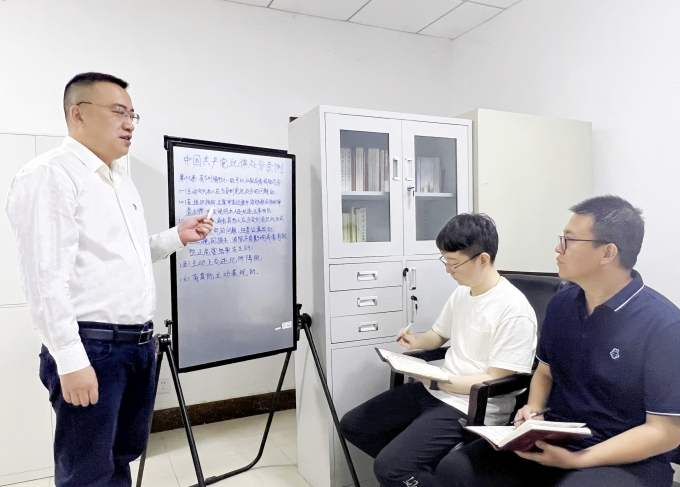 郑州市惠济区纪委监委坚持把纪律教育作为强化纪检监察干部队伍建设的重要抓手,把纪律挺在前面,注重抓早抓小、防微杜渐。图为该区纪委监委机关党委开展“纪法小课堂”场景。(郑州市惠济区纪委监委 王依婧 摄)