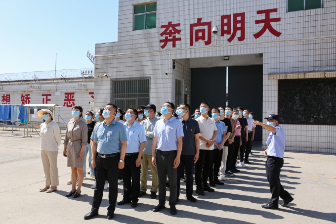 焦作市山阳区纪委监委坚持正面引导和反面警示相结合,不断丰富教育形式,持续强化党性教育。图为该区纪检监察干部在焦作市监狱参观服刑人员居住区。(焦作市山阳区纪委监委 刘伟峰 摄)