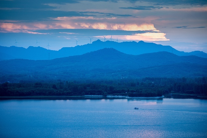 初冬的黄昏,玫瑰色的余晖将天空与水面染上了一层朦胧的韵味,树木瑟瑟,远山含情,人们泛舟湖上,静享冬日美好。(舞钢市纪委监委 钱森 摄)