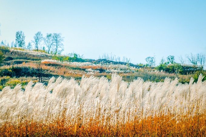初冬里,一簇簇芦苇花在阳光下随风摇曳,一眼望去犹如洁白的波浪层层叠叠。(新密市纪委监委 刘宏恩 摄)