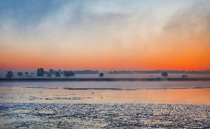 立冬,意味着秋去冬来。黄河故道,由此逐渐转换成冬天的气象,景色在繁复多姿中逐渐沁透出苍莽萧瑟。图为台前县黄河北岸“将军渡”呈现的初冬朝露晨雾美景。(台前县纪委监委 张乐斌 摄)