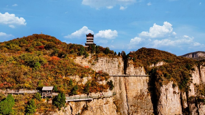 “细雨生寒未有霜,庭前木叶半青黄。”立冬时节的云台山寒风渐起,红叶满阶,秋意还未散尽,别有一番韵味。(修武县纪委监委 修纪轩 摄)