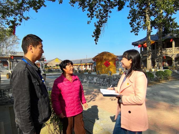 灵宝市纪委监委组建沿黄滩涂规范管理工作专班,紧盯关键环节,督促职能部门落实执法处置、规范管理等职责,全力护航黄河流域生态保护和高质量发展。图为工作人员在沿黄生态廊道灵宝段故县镇境内盘豆驿研学基地走访工作人员。(灵宝市纪委监委 杨蓓蓓 摄)