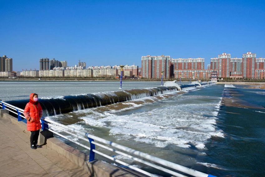 【洛河冬韵 川凝冻霭】大寒天气,流水“成”冰。温度达到一年里冷的极致,但却丝毫阻挡不了人民欣赏美景的心情和脚步,一袭红衣点缀其间,蓝天白“水”映衬下,加上远处林立的高楼,画面为我们定格了两个字“美好”。(宜阳县纪委)