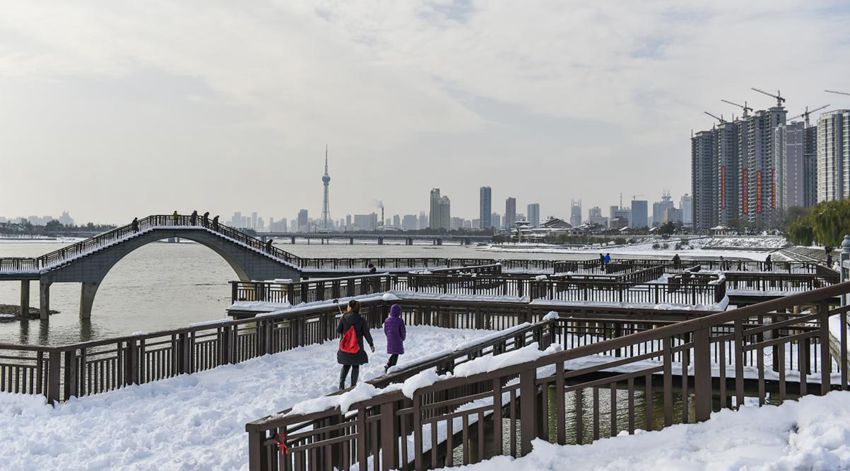 【洛河银装】2018年1月8日,河南洛阳洛河岸边栈道,洛河面银装素裹。(黄政伟)