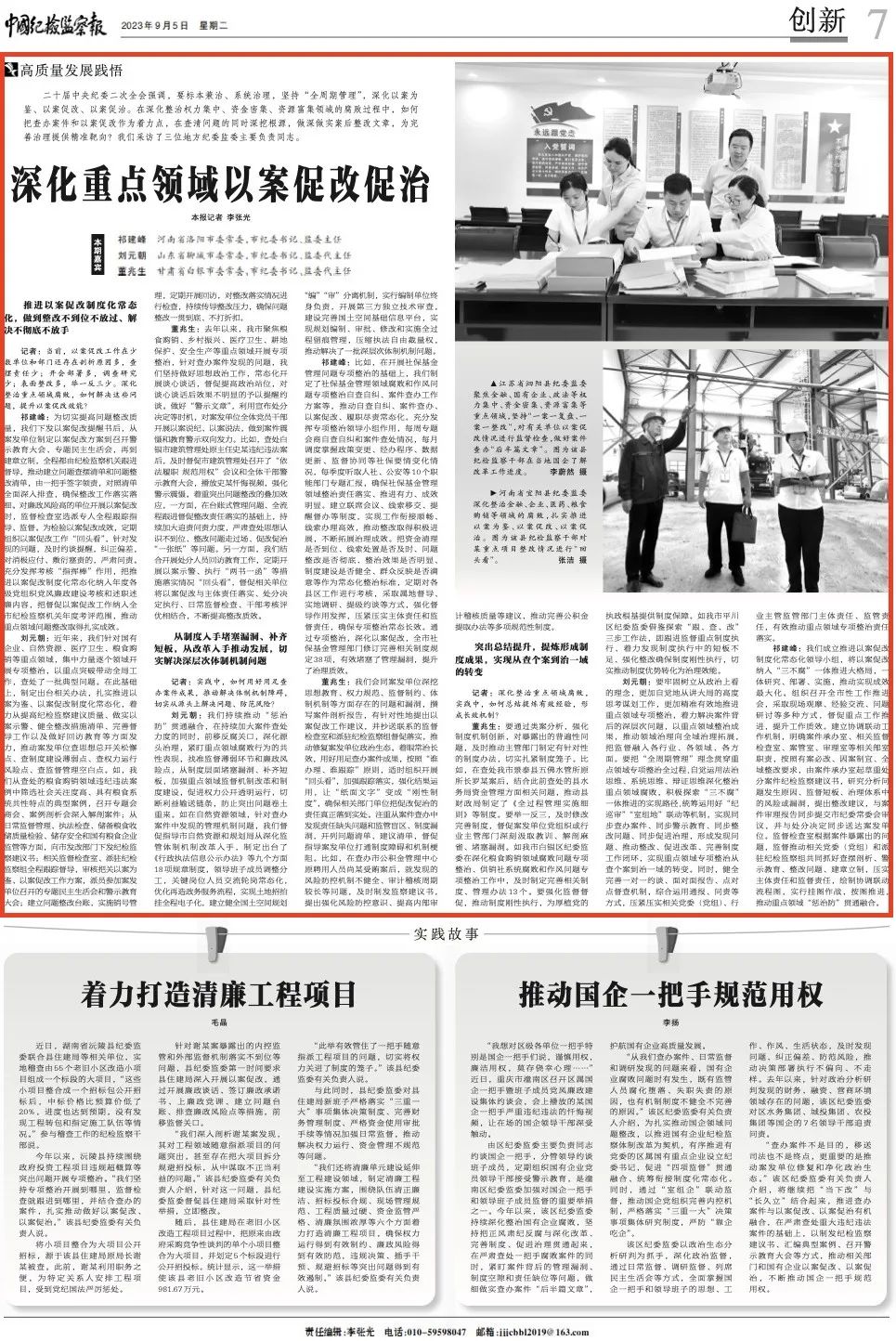 9月5日出版的《中国纪检监察报》“高质量发展践悟”栏目,刊发了对洛阳市委常委、市纪委书记、市监委主任祁建峰等三位省辖市纪委监委主要负责同志的专访稿件,敬请关注!
