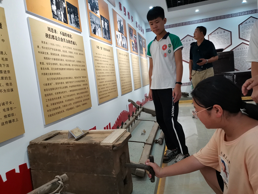 在洛阳市宜阳县锦屏镇后庄村的家风家训馆中,全家老少到此参观学习,孩子们学习着我们革命根据地的优良传统,听着老一辈的家风故事,观摩着自力更生时期的革命老物件。(宜阳县纪委监委供 谷矿强摄)
