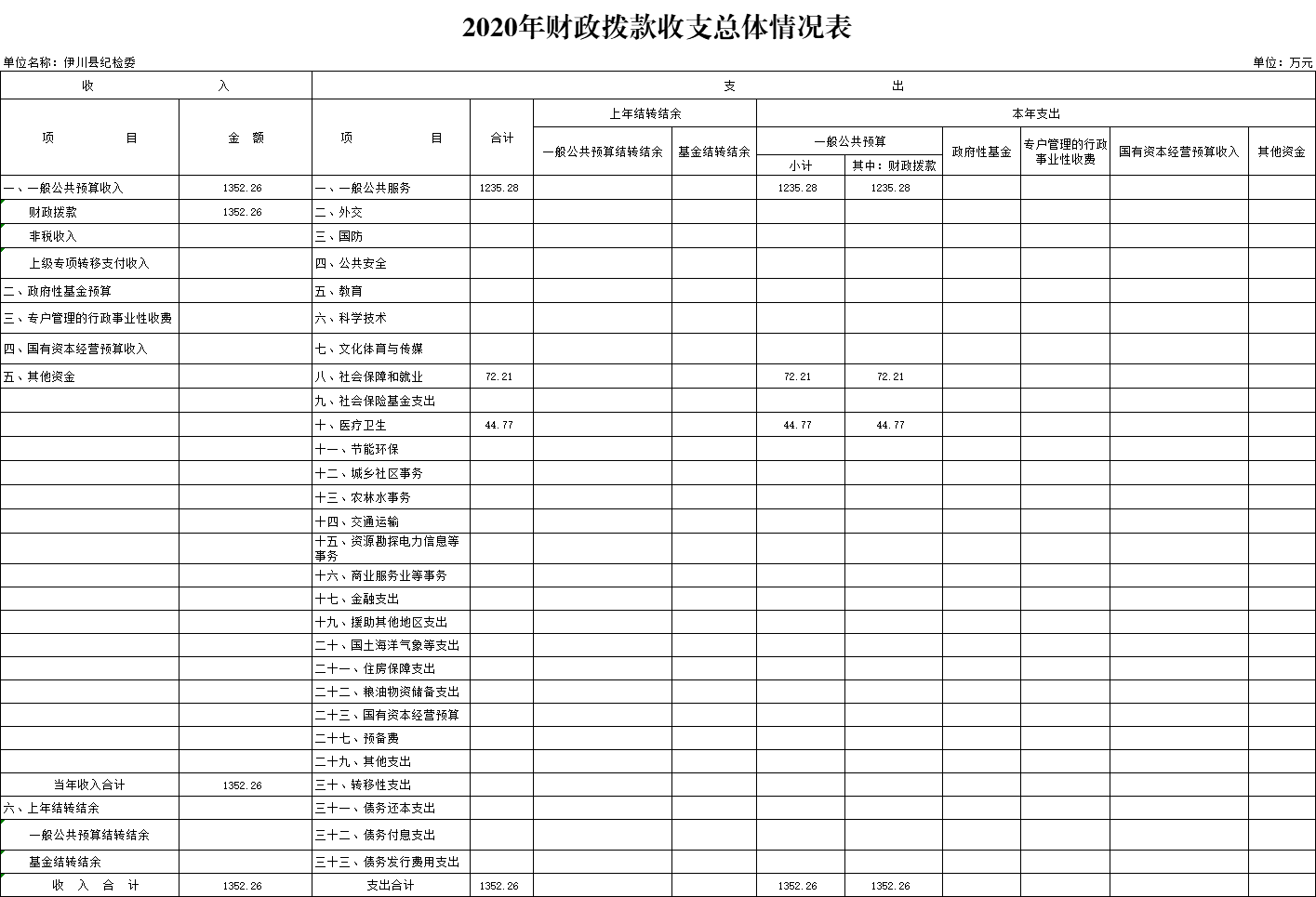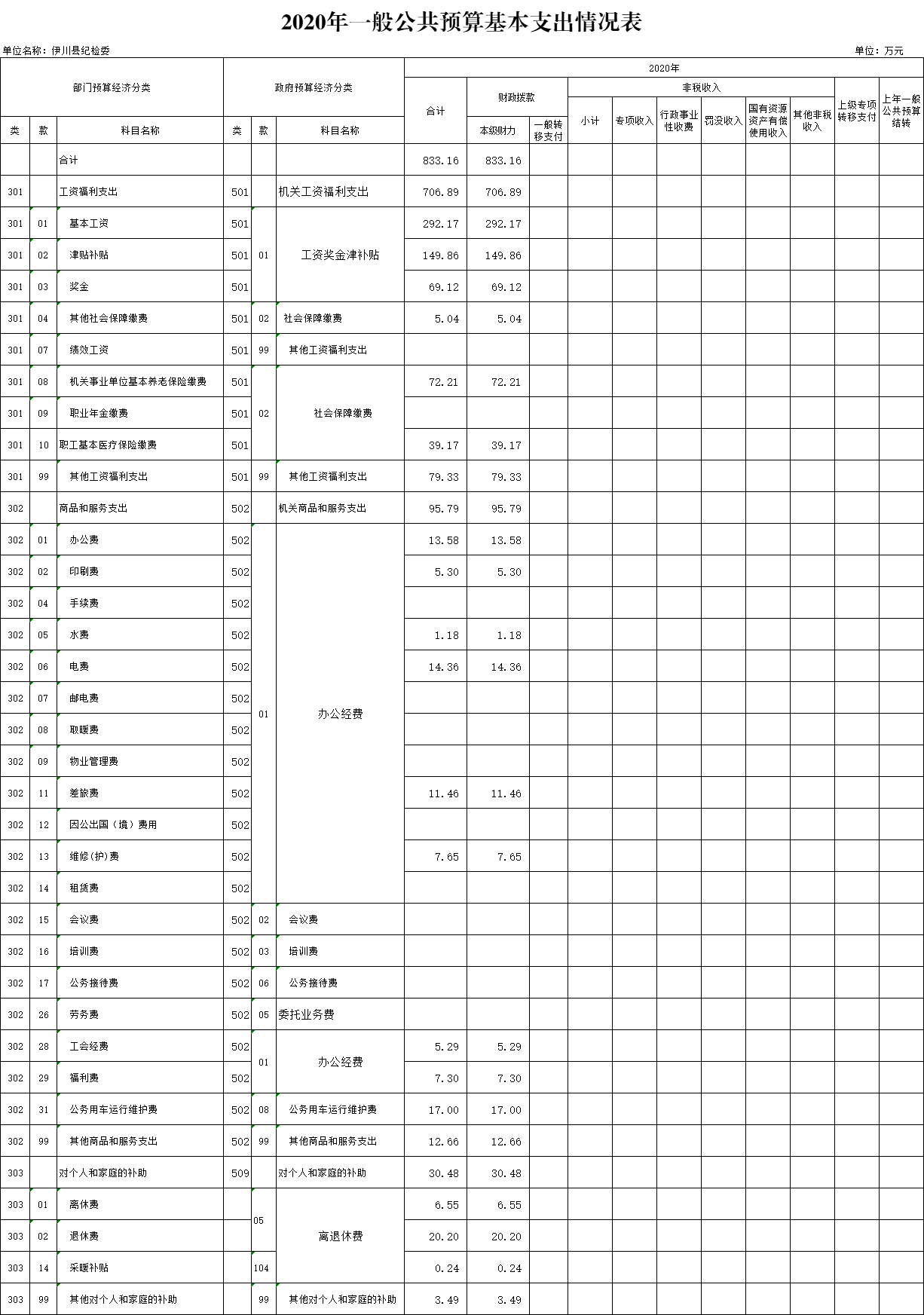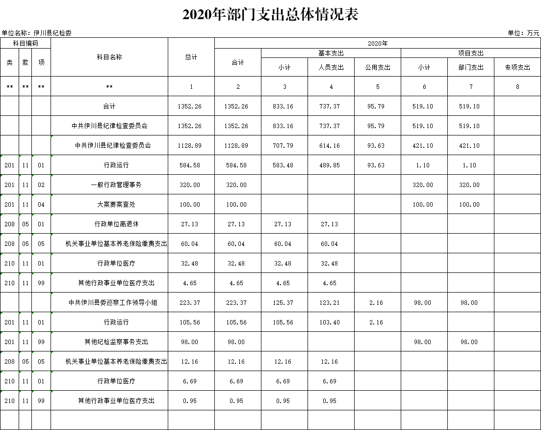 公示公开|中共伊川县纪律检查委员会 2020 年部门预算公开
