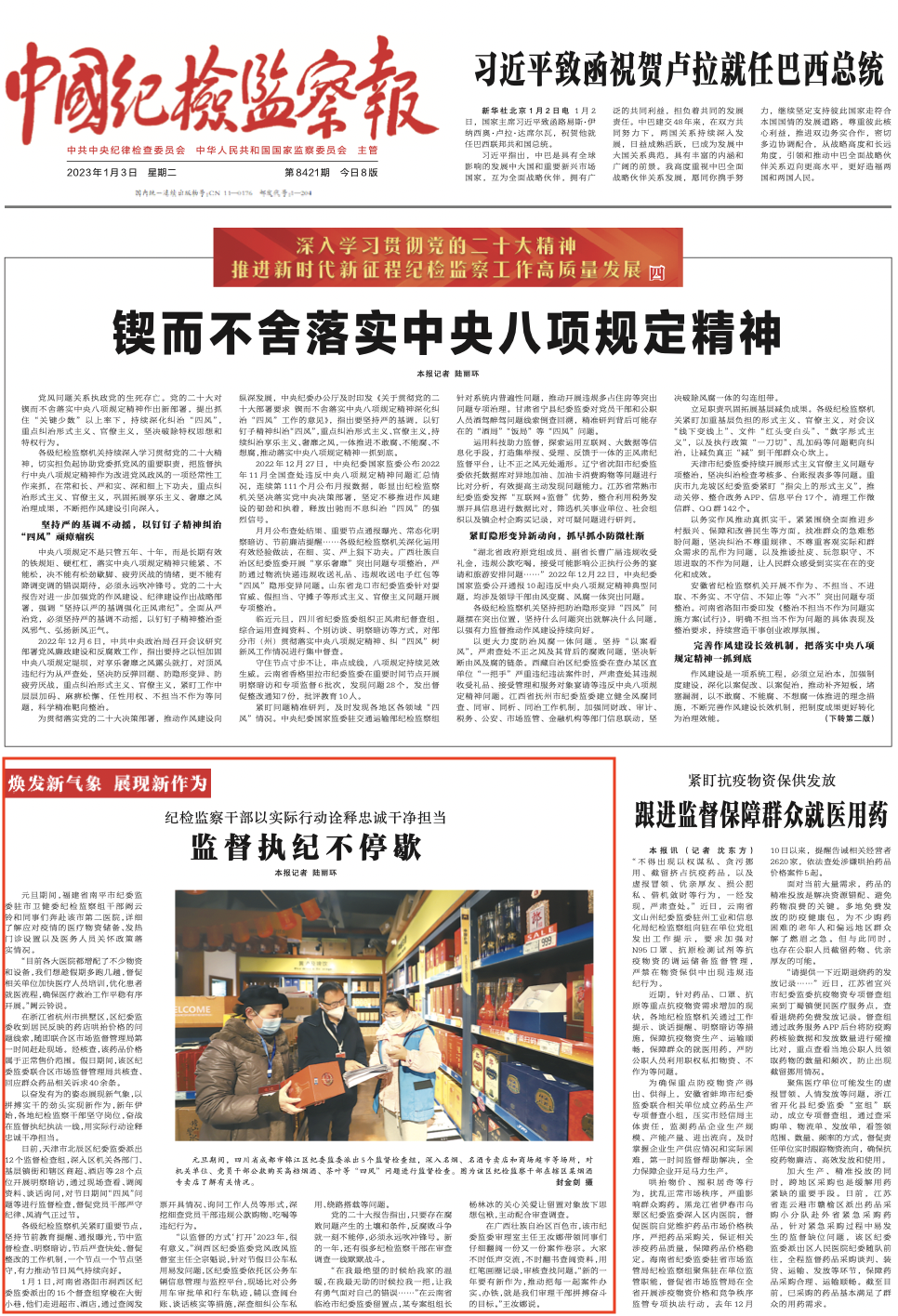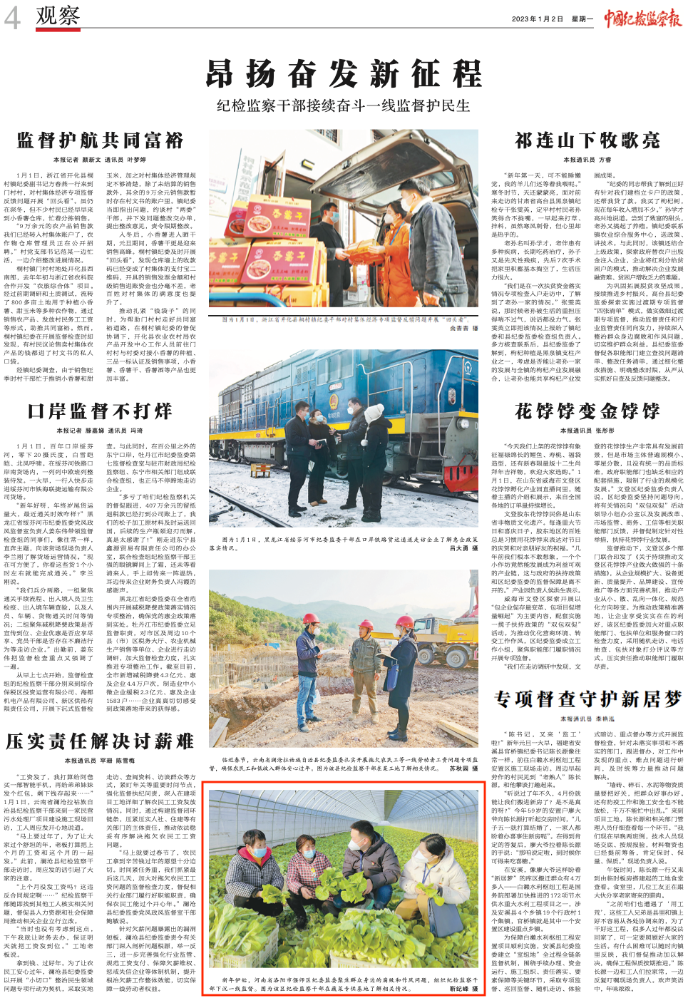 1月2日出版的《中国纪检监察报》刊发图片新闻,报道我市纪检监察机关聚焦群众身边的腐败和作风问题,组织纪检监察干部下沉一线监督的相关内容。