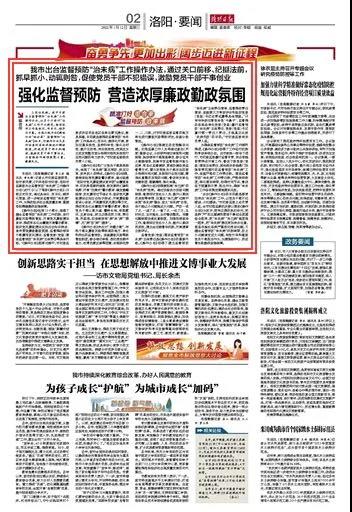 《中共洛阳市纪委、洛阳市监察委员会监督预防“治未病”工作操作办法(试行)》(以下简称《操作办法》)日前正式印发,通过具体化、项目化、程序化措施,进一步做实监督预防“治未病”工作,为推动经济社会高质量发展、重振洛阳辉煌提供坚强保障。